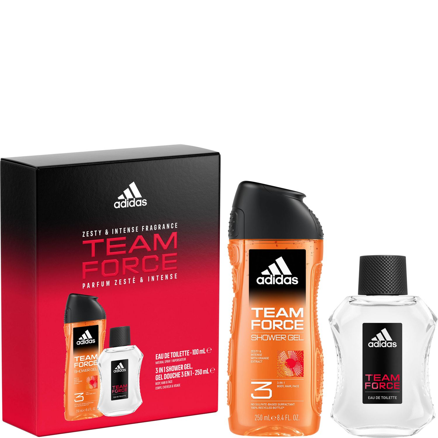 ADIDAS COFFRET TEAM FORCE 2 PRODUITS EDT 100ML + GEL DOUCHE 250 ML