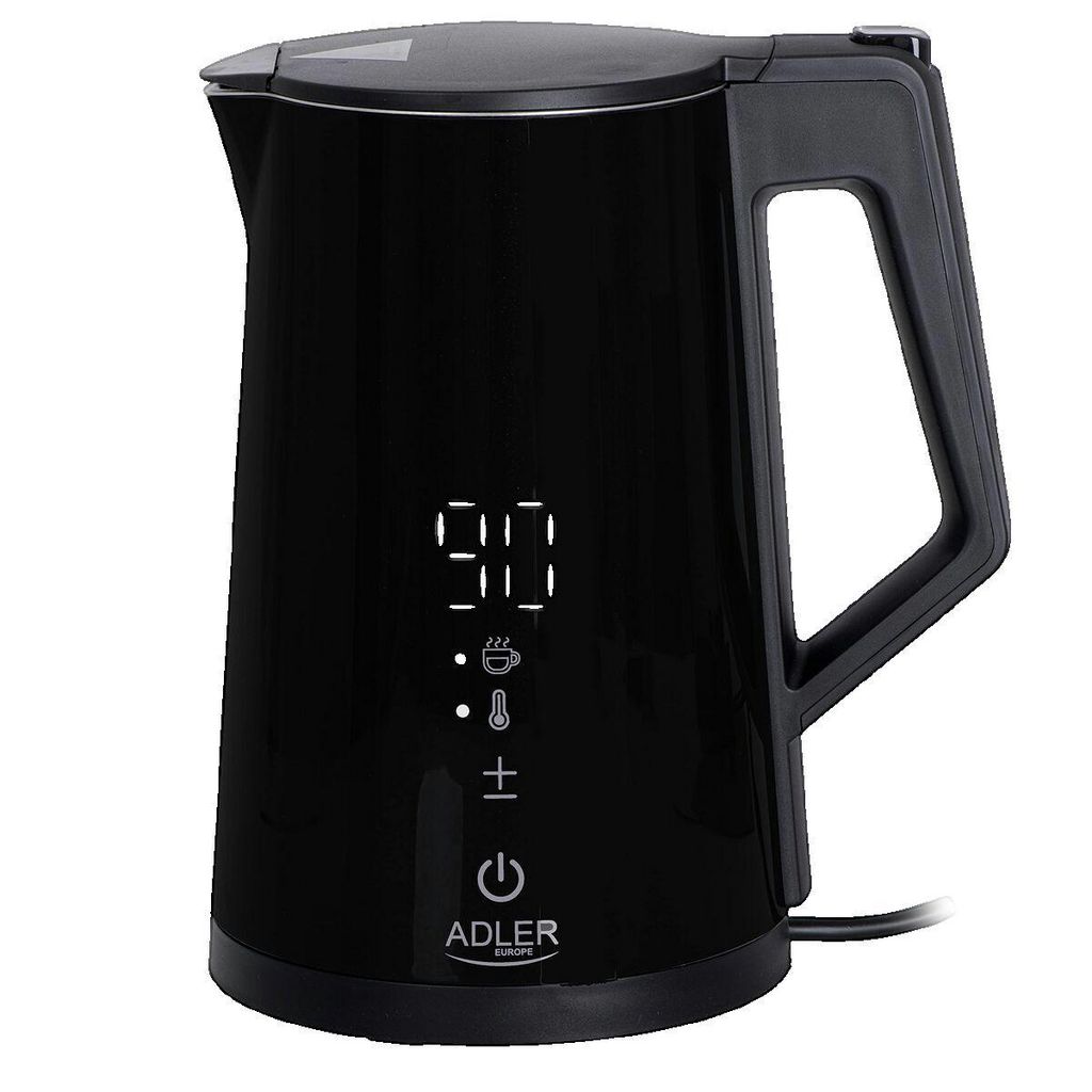 La bouilloire électrique Adler AD 1345b offre une expérience de chauffage d'eau unique grâce à son écran LED et sa régulation précise de température (40°C, 55°C, 80°C, 90°C, 100°C). Avec une capacité de 1,7 litre, elle est parfaite pour toute la famille. Sa conception élégante en noir s'intègre parfaitement à toute cuisine. Équipée d'un système de sécurité STRIX qui prévient la mise en marche à vide, elle s'éteint automatiquement une fois l'eau à ébullition. Elle dispose également d'une base rotative, d'une fonction maintien au chaud, d'un indicateur de niveau d'eau et d'une conception double paroi pour une meilleure isolation. Idéale pour préparer des boissons chaudes parfaitement.