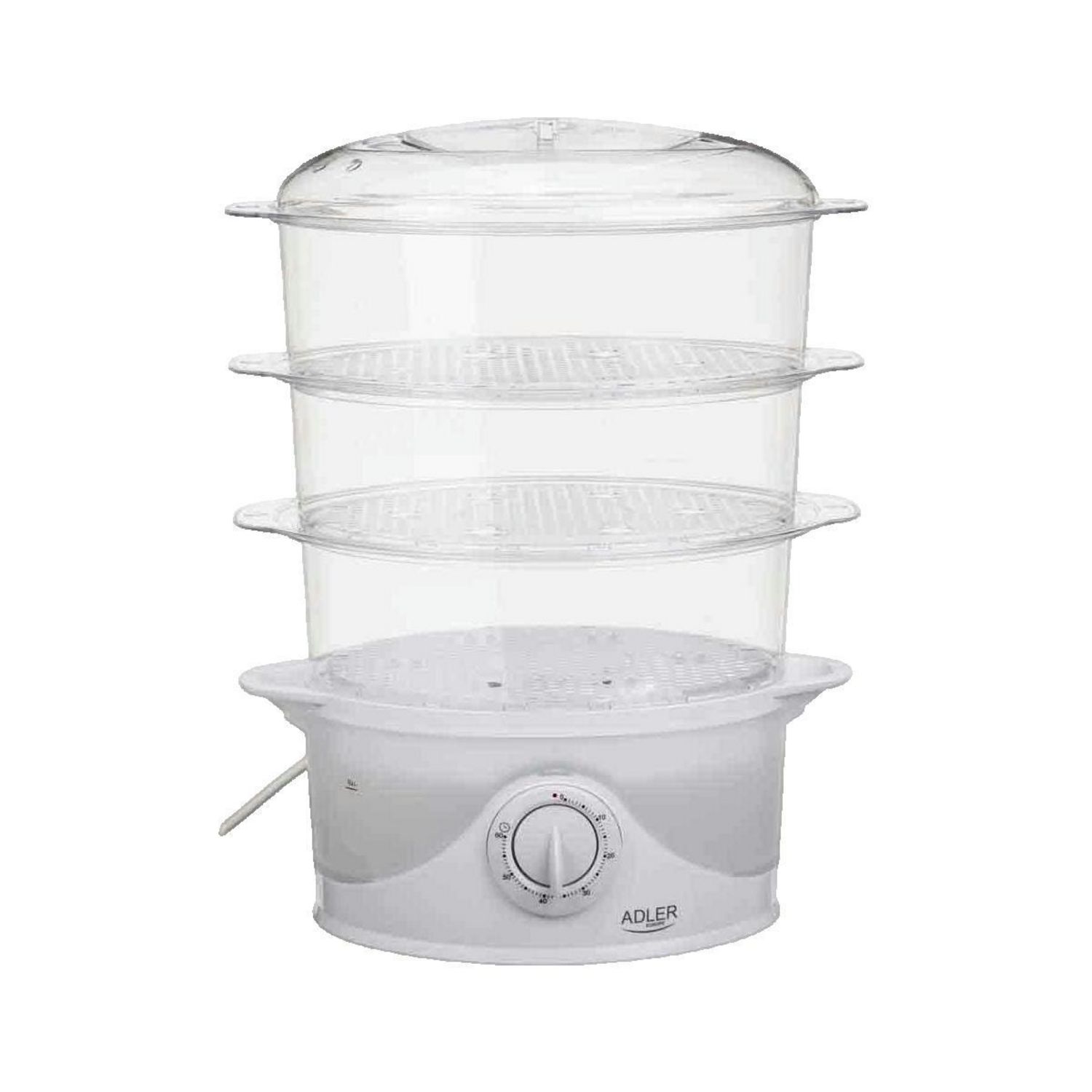 Le cuiseur vapeur électrique Adler AD633 est un appareil pratique et fonctionnel, idéal pour préparer des repas sains. Avec une puissance de 800 W, il permet de cuire une variété d'aliments avec une capacité totale de 9 litres. Équipé d'un minuteur mécanique de 60 minutes, il garantit un chauffage u