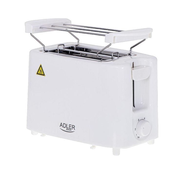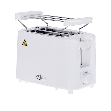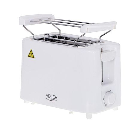 Le grille-pain Adler AD 3223 est un appareil performant conçu pour griller rapidement deux tranches de pain grâce à ses six réglages de brunissage. Il dispose d'un support pour réchauffer les viennoiseries et s'arrête automatiquement pour garantir la sécurité de l'utilisateur. Fabriqué en plastique