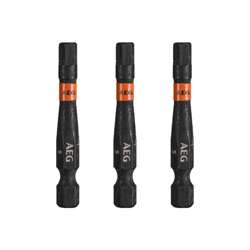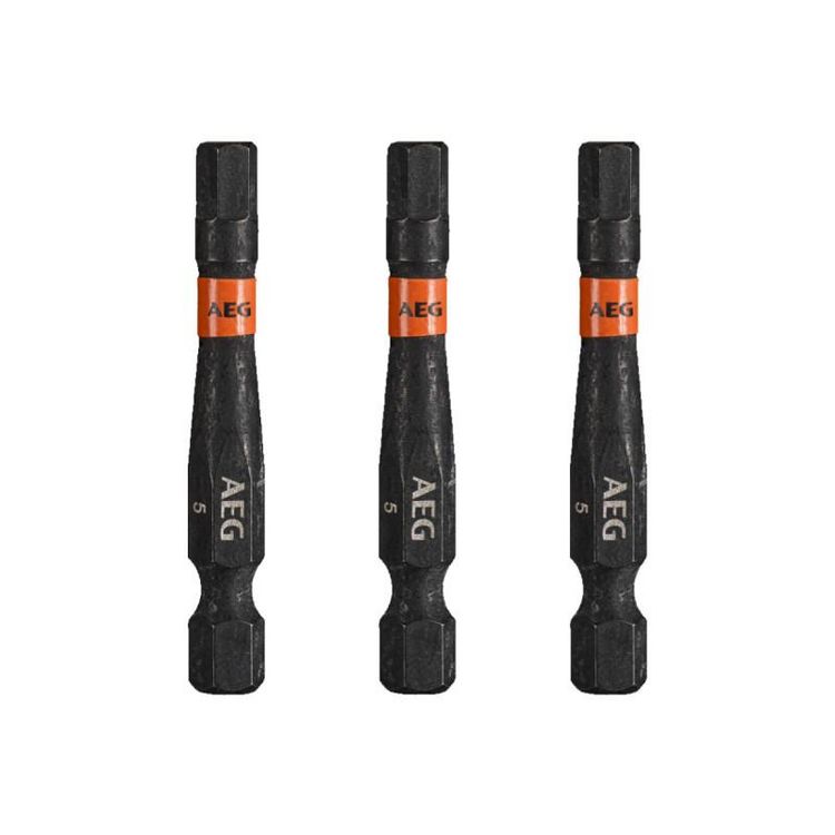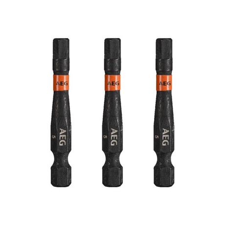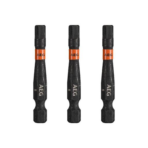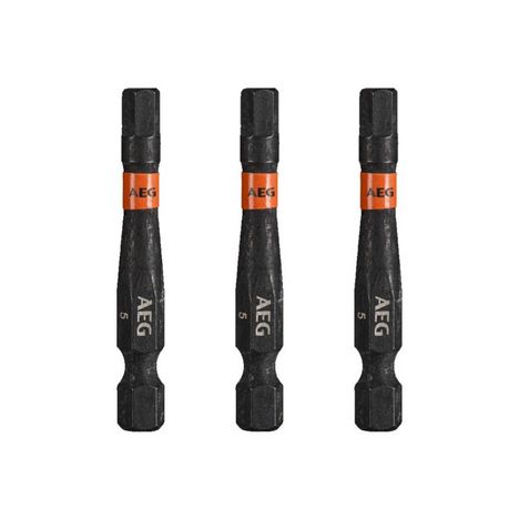 Embouts de vissage balistiques renforcés AEG - 50 mm - 3 pcs - HEX5, conçus pour fonctionner avec impact lors du montage et du démontage des fixations. En raison de la zone de torsion à couple élevé, la transmission de force est réduite, ce qui se traduit par une longue durée de vie.
