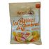 Citron : sucre sirop de glucose, arôme naturel, acidifiant : acide citrique, colorant : E100. Orange : sucre sirop de glucose, arôme naturel, acidifiant : acide citrique, colorants : E100, E162. Framboise : sucre, sirop de glucose, arôme, acidifiant : acide citrique, colorant : E162.