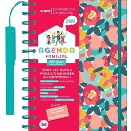 16 mois, de septembre 2025 à décembre 2026. Planning hebdomadaire complet. Menus de la semaine à préparer. Liste de courses détachables. Blocs-notes ultra-pratique. Objectifs et tâches à réaliser. Plus de 500 autocollants aide-mémoire. Et aussi : Anniversaire à souhaiter, budget familial, emplois du temps des enfants, informations pour la baby-sitter, grande pochette range-document, marque-page gradué.