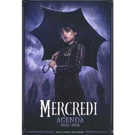 MERCREDI RETROUVEZ TOUT CE DONT VOUS AVEZ BESOIN POUR UNE ANNEE BIEN ORGANISEE : des pages pour noter les devoirs, deux emplois du temps semestriels, un planning annuel, les dates des vacances scolaires... Avec les meilleures citations de Mercredi et des photos inédites de la série. L'AGENDA INDISPE