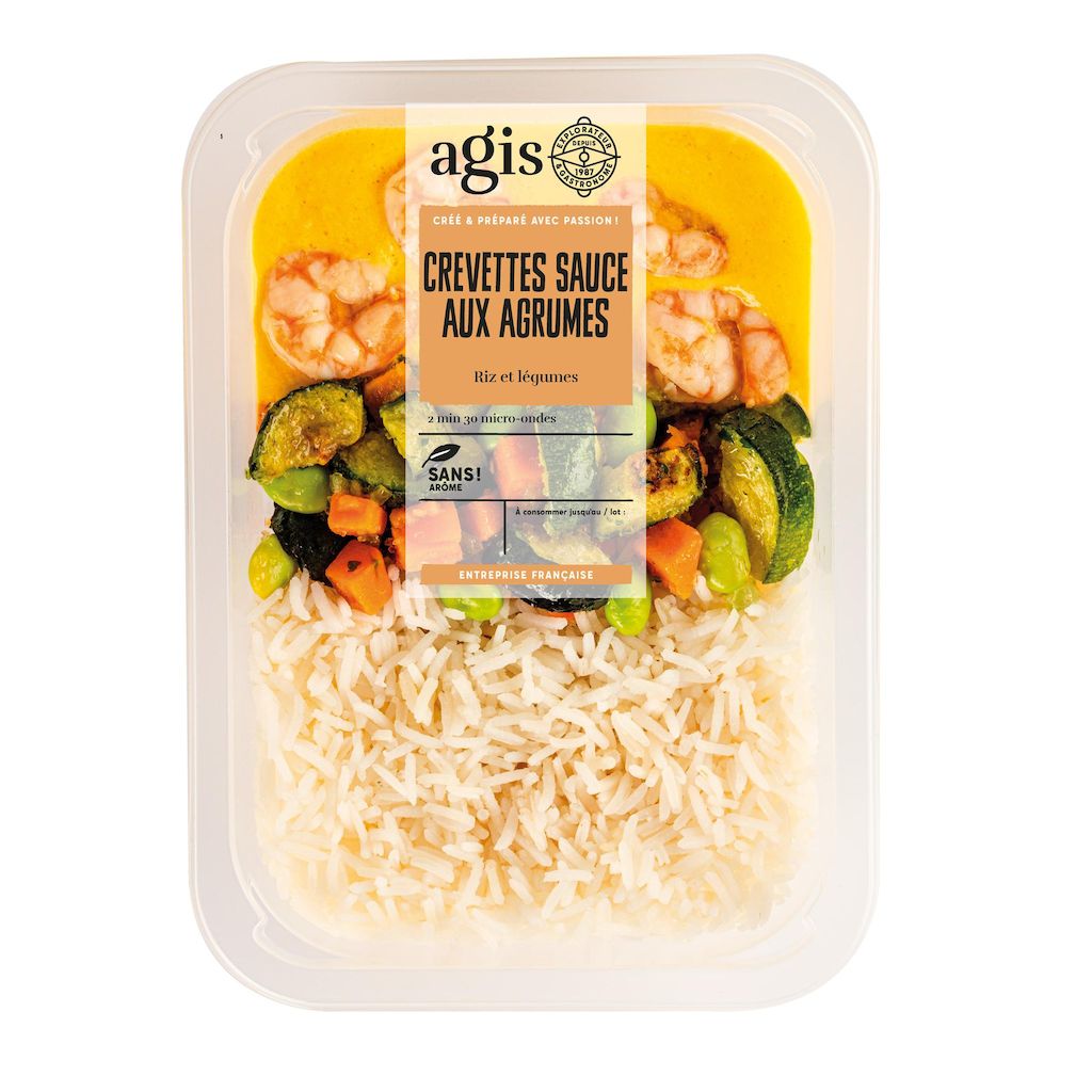 Crevettes sauce aux agrumes, riz et légumes