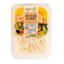 Riz basmati cuit 30% (eau, riz basmati), CREVETTE décortiquée 15% (CREVETTE, eau, sel), courgette grillée 11%, eau, CRÈME fraîche, patate douce 7%, fève de SOJA 4%, échalote, huile de tournesol, jus de citron 1%, gélatine de POISSON, sel, amidon, jus de citron vert 0,5%, sucre, oignon en poudre, zeste de citron 0,2%, ail en poudre, persil, extrait de carotte, zeste d'orange 0,1%, stabilisant : bicarbonate de sodium, poivre