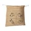 Ce sac en jute est idéal pour transporter et stocker des légumes et des fruits. La toile de jute est une matière naturelle et résistante. Ce sac est issu d'une fabrication artisanale d'une entreprise indienne certifiée 'Fair For Trade'. En jute. Cordon en coton biologique. Dimensions : 25 x 25 cm.