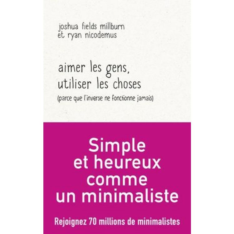 Dans ce nouveau livre, les auteurs nous expliquent comment se reconnecter à nous-mêmes et aux autres. Nous achetons et consommons beaucoup trop, sans que cela nous rende plus heureux. Comment se sentir plus épanoui en se recentrant sur les relations humaines ? Le minimalisme est une philosophie pratique qui nous invite à repenser nos actions au quotidien en nous débarrassant de tout ce qui entrave notre bonheur. En possédan moins de choses et en éliminant les germes de notre souffrance, nous apprenons, grâce à ce livre, à faire de la place aux valeurs humaines essentielles pour plus de créativité, plus d'amour et plus de liberté dans notre vie.