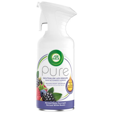 Avec sa formule sans eau ajoutée, l’aérosol désodorisant Pure neutralise les odeurs sans retombées humides et laisse un parfum frais et agréable dans votre maison!