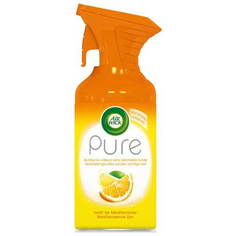 Avec sa formule sans eau ajoutée, l’aérosol désodorisant Pure neutralise les odeurs sans retombées humides et laisse un parfum frais et agréable dans votre maison!