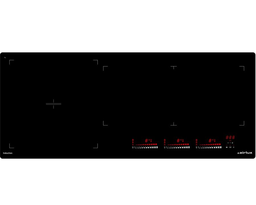 Airlux ATIF930BK Table de cuisson induction panoramique Airlux ATIF930BK avec Fonction bridge : les deux foyers octoflex peuvent être reliés en 1 zone de cuisson libre commandée depuis 1 unique slider. Détection dynamique des casseroles : lorsqu'une casserole est posée ou déplacée sur la table, des
