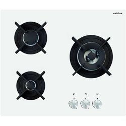 Airlux AV635HWH Table verre gaz Airlux AV635HWH. - Type de produit : Intégré.Type de plaque : Gaz.Type de surface extérieure (dessus) : Verre.Epaisseur du verre : 8 mm.Nombre de brûleurs : 3.Nombre de brûleurs de gas : 3.Couleur : Blanc.Brûleur de mijotage : 1000 W.Brûleur ordinaire : 1650 W.Brûleur