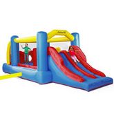 Vos enfants pourront alors se dépenser, développer leur créativité et agilité. Ils pourront faire la course en glissant sur le double toboggan. Il y a aussi un mur d'escalade pour accéder au toboggan, celui-ci est à l'intérieur et les enfants pourront donc s'amuser sans risque. Il est aussi possible d'ajouter un jet d'eau (non fournit) et de le diriger vers les toboggans afin de transformer le château gonflable en parc aquatique.