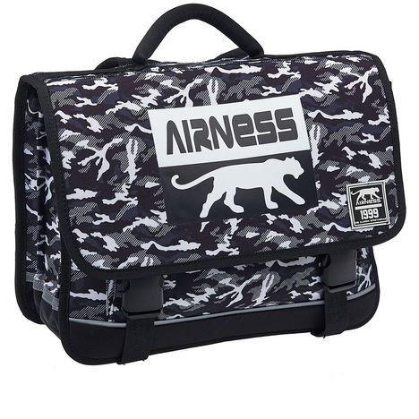 Cartable 41 cm Airness LIBERTY 3 Compartiments en Polyester 600 Deniers. Décor sérigraphié, coloris Noir et blanc. Cartable 41 cm, 41x34x14. Capacité de 19,52 L. Cartable adapté aux besoins de votre enfant. Bandes réfléchissantes sur le cartable pour la sécurité des enfants, bretelles ergonomiqu