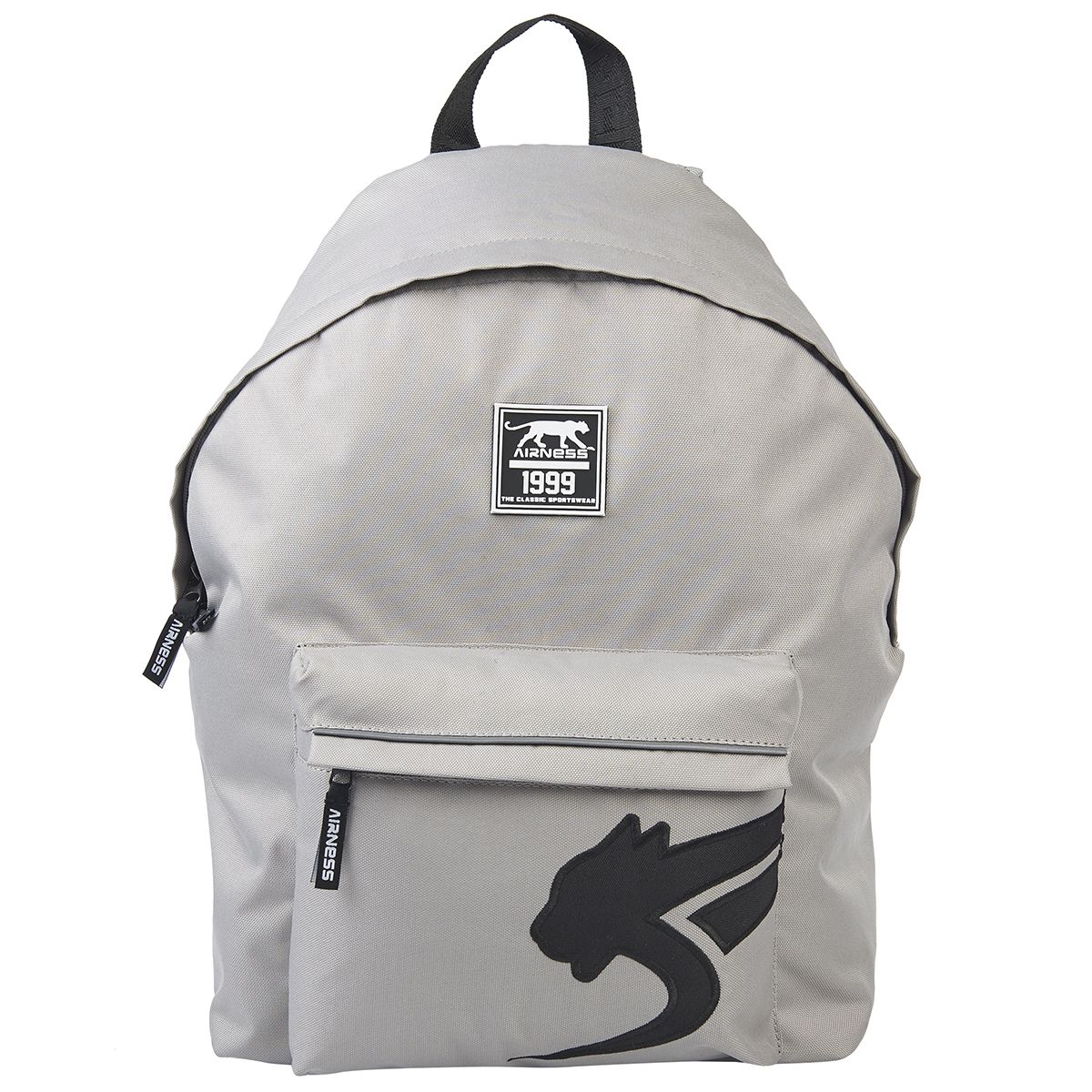 Sac à dos Airness Choral 1 compartiment en Polyester 600 Deniers. Décor Brodé, coloris Gris et Noir. Dimension 30x41x14. Sac adapté aux besoins de votre enfant. Capacité de 18 L. Bandes réfléchissantes sur le sac à dos pour la sécurité des enfants, bretelles ergonomiques, matelassées et dos renforcé
