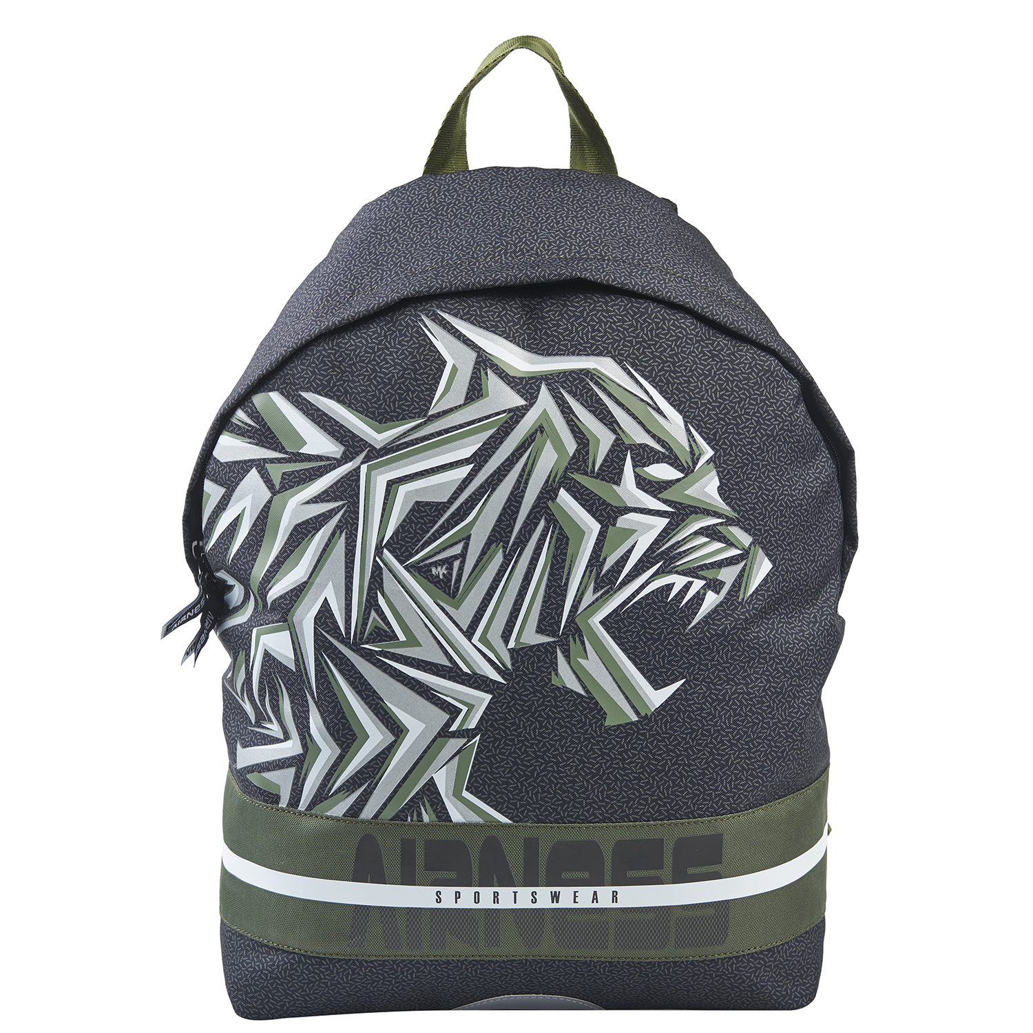 Sac à dos Airness Neve 1 compartiment en Polyester 600 Deniers. Décor sérigraphié, coloris Noir vet Kaki. Dimension 30x41x14. Sac adapté aux besoins de votre enfant. Capacité de 17 L. Bandes réfléchissantes sur le sac à dos pour la sécurité des enfants, bretelles ergonomiques, matelassées et dos r