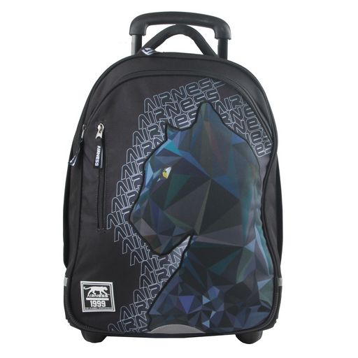Sac à roulettes Airness Panthera 2 Compartiments en Polyester 600 Deniers. Décor sérigraphié et Brodé, coloris Noir. Dimension 35x49x17. Doublure et puller personnalisés à la licence. Sac adapté aux besoins de votre enfant. Capacité de 29,15 L. Bandes réfléchissantes sur le sac à roulettes pour la