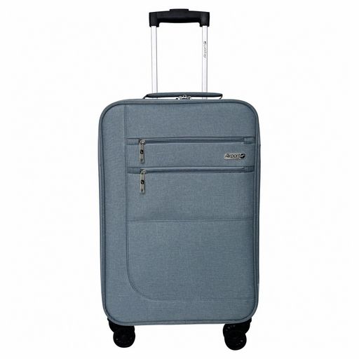 Valise souple en Polyester, 55 cm, 4 roues, 1 compartiment avec 2 élastiques croisés + 1 poche zippée sur le devant