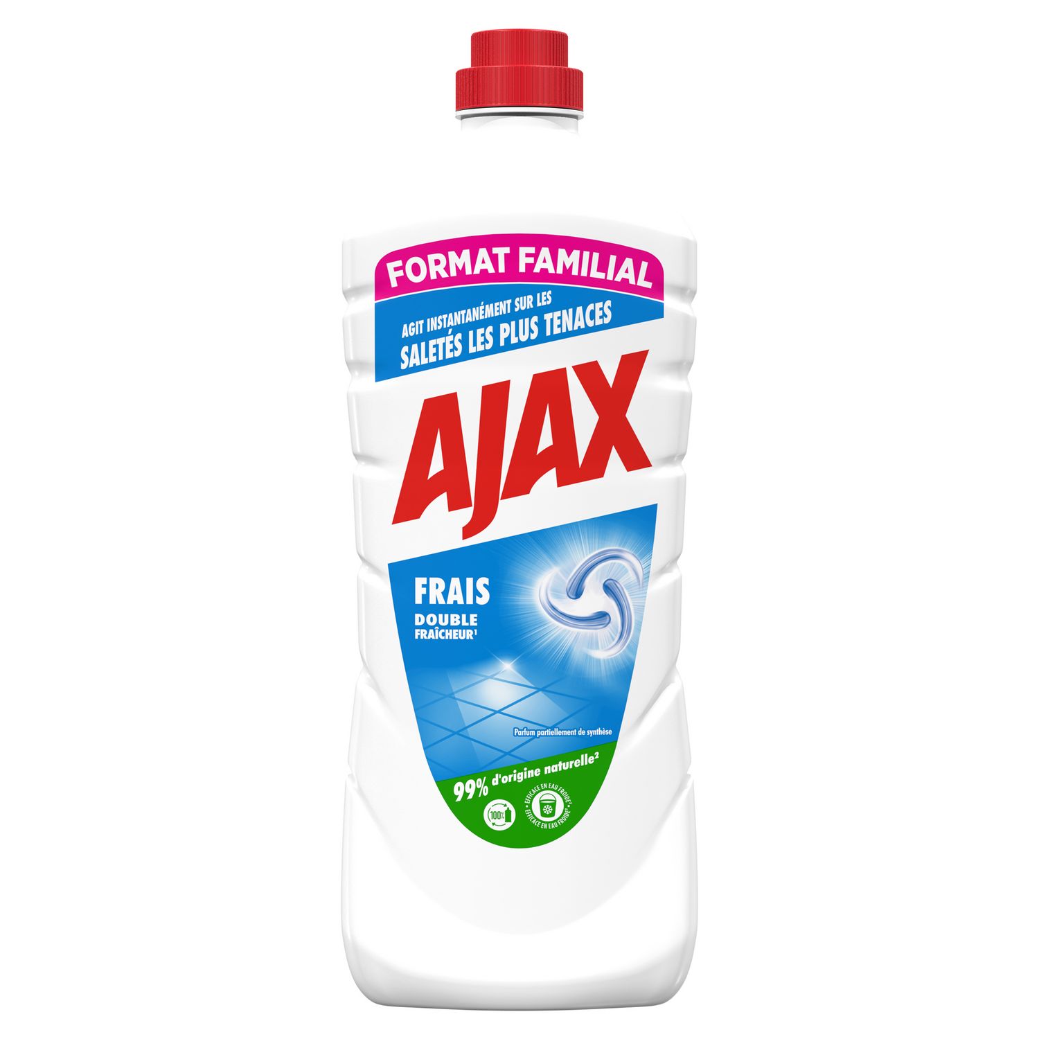 Le nettoyant multi-surfaces Ajax Frais offre un pouvoir 100% nettoyant et s'attaque instantanément à la saleté. Il est doté d'une technologie double fraîcheur qui libère 2 vagues de fraîcheur.