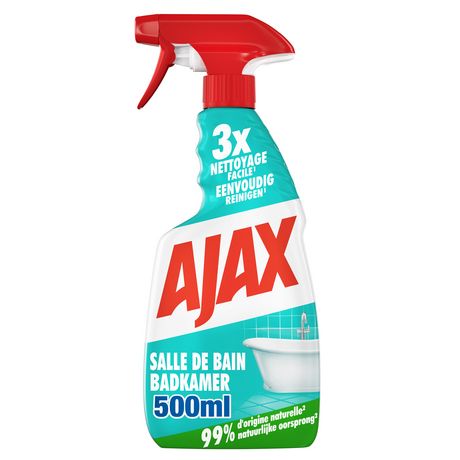 Le spray nettoyant Ajax Salle de bain composé avec 99% d'ingrédients d'origine naturelle et offre un pouvoir détartrant instantané. Utilisez-le sur les surfaces et les sols pour des résultats impeccables.