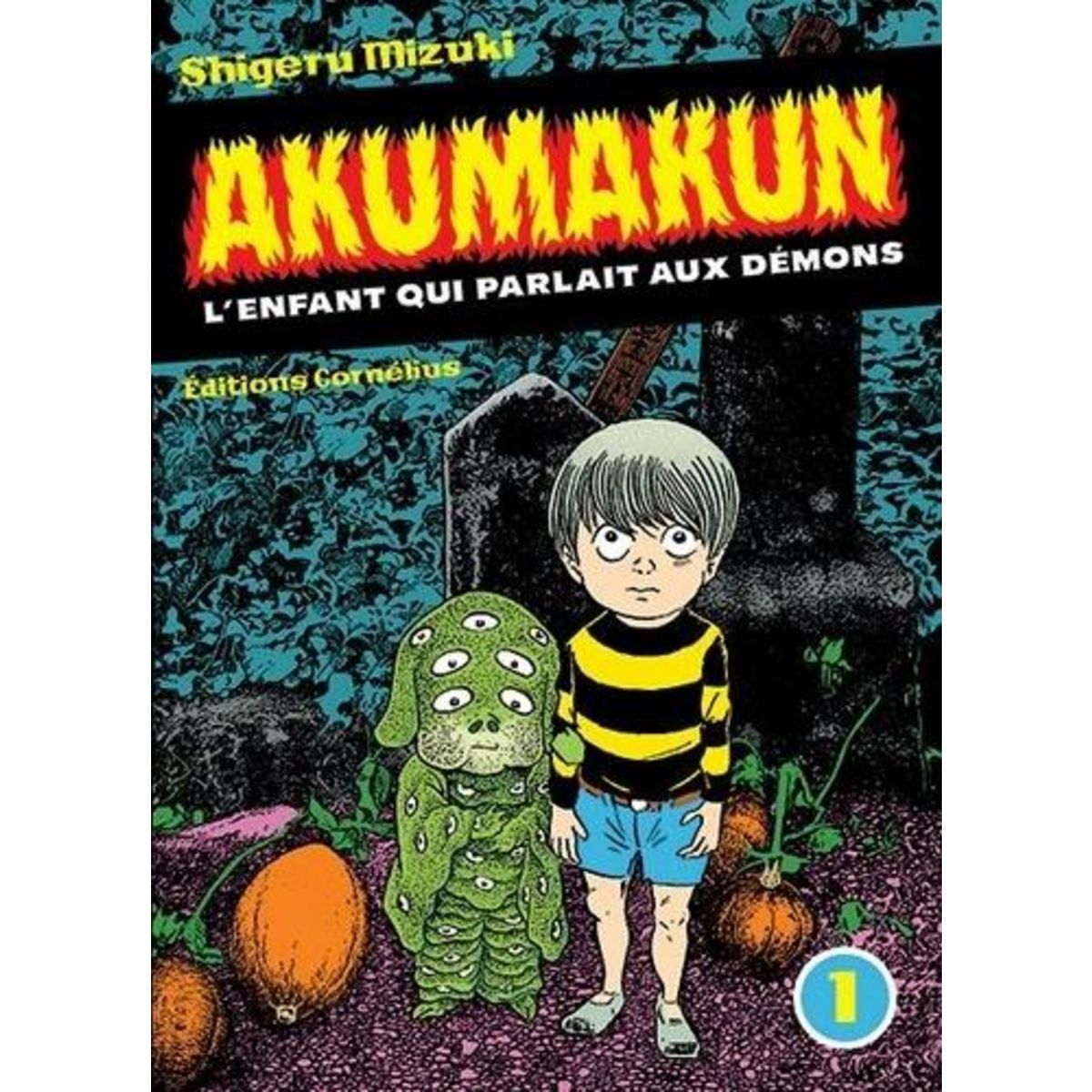 Créé en 1963, Akuma-kun (ou Akumakun, littéralement l'enfant-démon) est le troisième personnage mythique imaginé par Shigeru Mizuki au début de sa carrière, après Kitaro le repoussant (1960) et Mon ami le Kappa (1961) (tous deux traduits chez Cornelius). Ces trois séries connaîtront plusieurs déclinaisons sous forme de manga et d'anime, marquant l'esprit de plusieurs générations d'enfants japonais. Comme ses deux collègues (qui font ici une brève apparition), le jeune Shingo est un écolier confronté à des créatures surnaturelles. Mais à la différence du paisible Sanpei et de l'intrépide Kitaro, il porte sur ses épaules le destin de sa lignée, qui voit naître tous les dix mille ans un enfant prodigieux nommé Akuma-kun. Son rôle ? Invoquer le diable et en faire son obligé afin d'instaurer le paradis sur la Terre. Cette vaste mission, on le comprend, n'est pas à la portée du premier venu. Mais elle prend des dimensions titanesques lorsque l'on découvre que le diable est avare avant d'être maléfique et que l'humanité ne semble pas pressée de connaître l'ère de béatitude promise par l'enfant-prophète. Détourné de son sacerdoce par ses camarades et condamné à marchander chaque intervention du diable, Akuma-kun est un saint parmi les saboteurs.