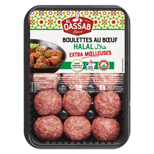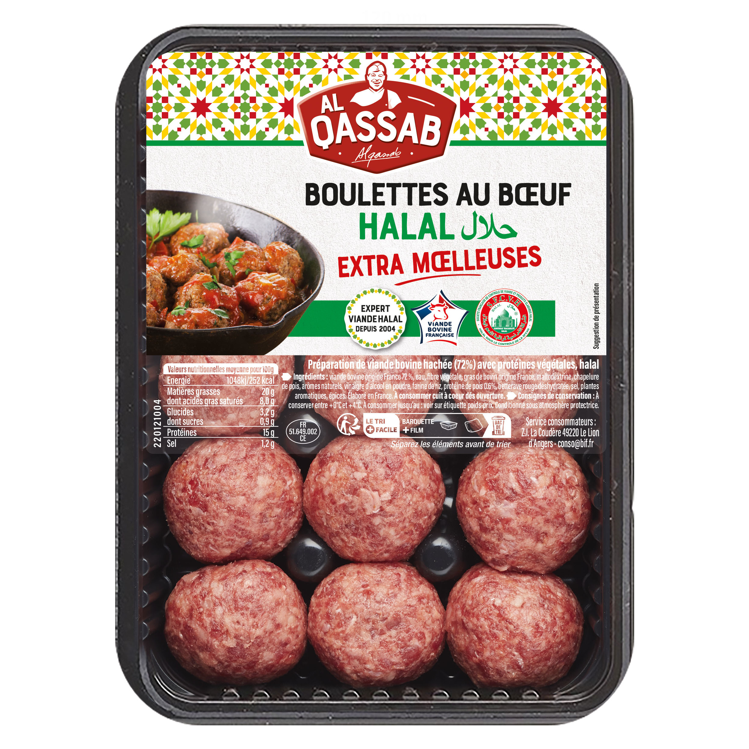 Préparation de viande bovine hachée (72%) avec protéines végétales, halal.