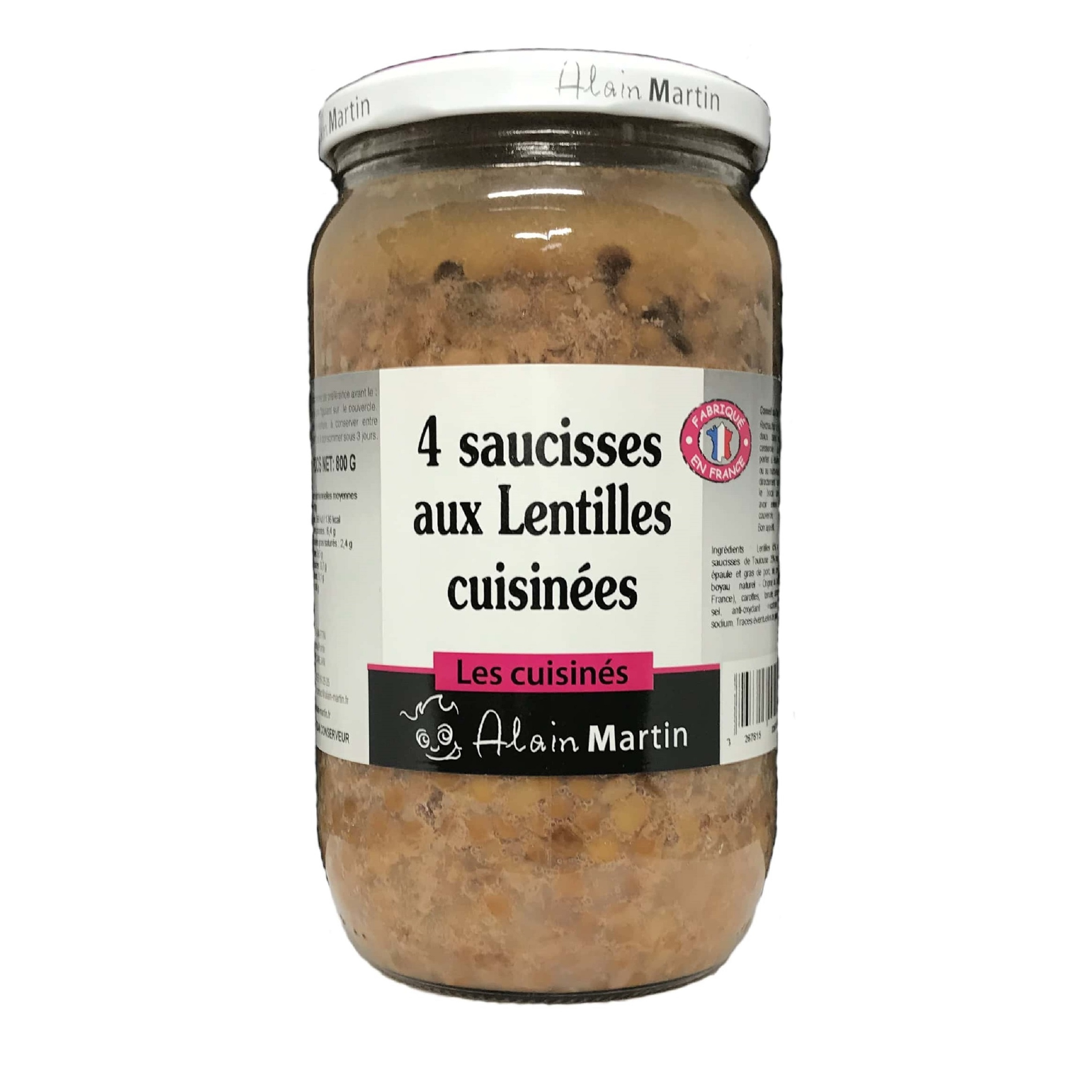 4 saucisses campagnardes aux lentilles cuisinées 800g
