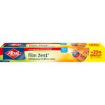 Film 2 en 1 - Protège les aliments au réfrigérateur, évite leur dessèchement et les transferts d'odeurs - Résistant aux hautes températures, il est adapté à la cuisson des aliments au micro-ondes et protège le four des projections pendant la cuisson - Système d'amorce pratique - Doté d'une nouvelle scie incurvée et d'un packaging ergonomique ALBAL - Film 2 en 1 20m +25% Gratuit