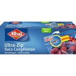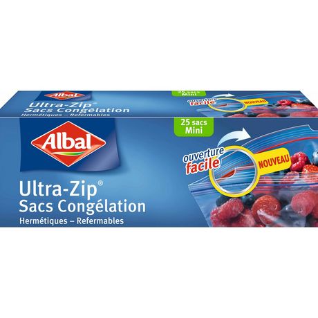 Sacs Congélation Ultra-Zip Mini - Protège la saveur et le goût des aliments congelés - Protection contre la formation du givre grâce au plastique résistant - Double fermeture intégrée Ultra-Zip hermétique - Plastique épais et résistant ALBAL SACS CONGELATION ULTRA-ZIP mini modèle 0,5 litres