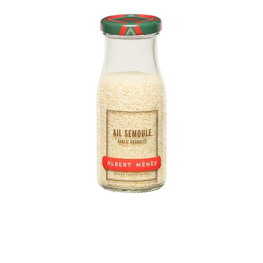 L'ail est connu depuis la nuit des temps pour ses vertus curatives. Il est produit grâce au broyage de l'ail séché. Facile d'utilisation, cet ail semoule est un incontournable de la cuisine provençale. Il aromatisera vos plats à base de tomates, vos sauces et vos salades. Il peut aussi être réhydraté dans un liquide pour le rendre plus fondant.