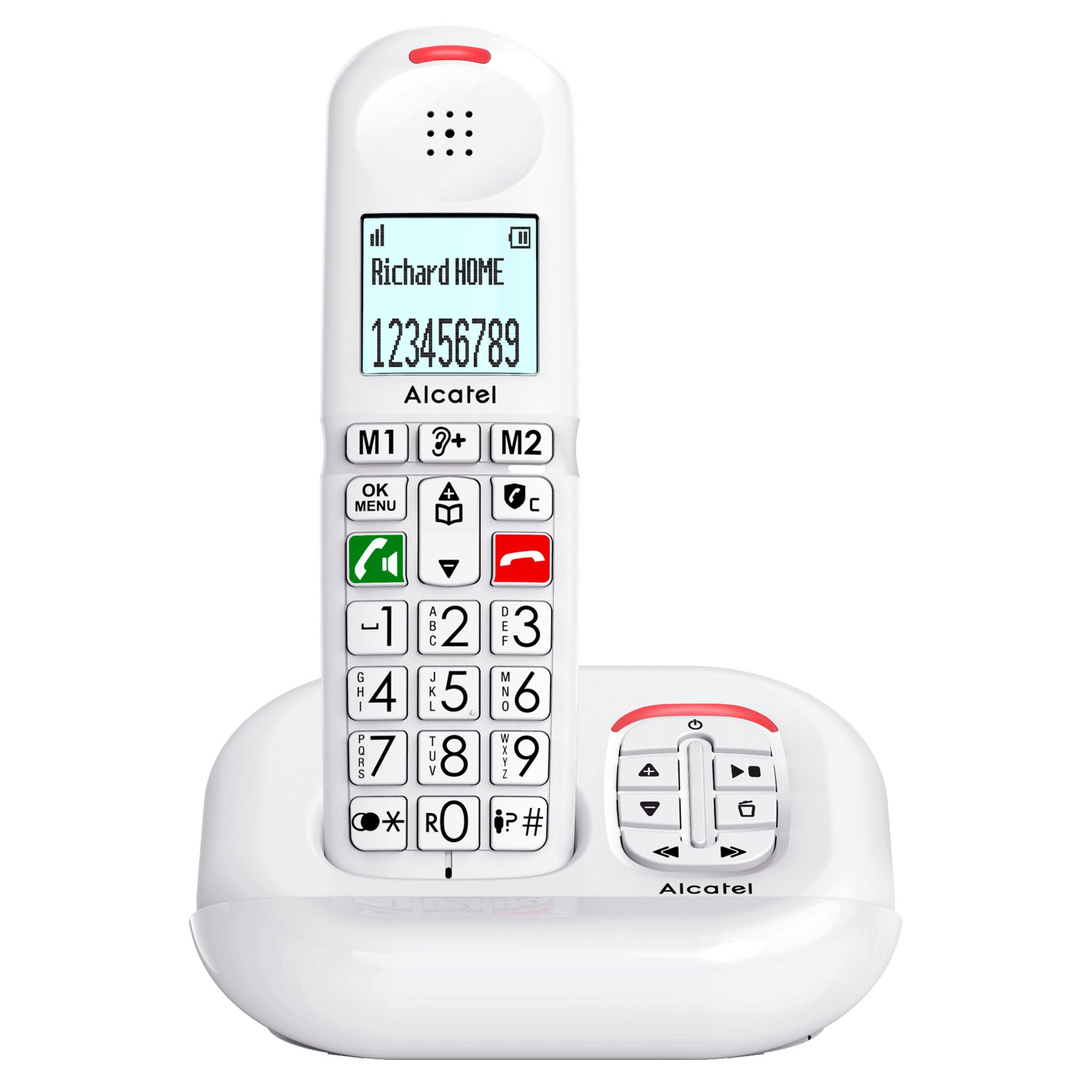 Alcatel XL685VOICEBLANC Téléphone sans fil dect XL685VOICEBLANC d'Alcatel.Téléphone sans fil à grosses touches avec amplificateur audio, mémoires directes, mains-libres et blocage des appels indésirables.Confort d'écoute, simplicité d'utilisation et efficacité contre les appels indésirables ! - Type