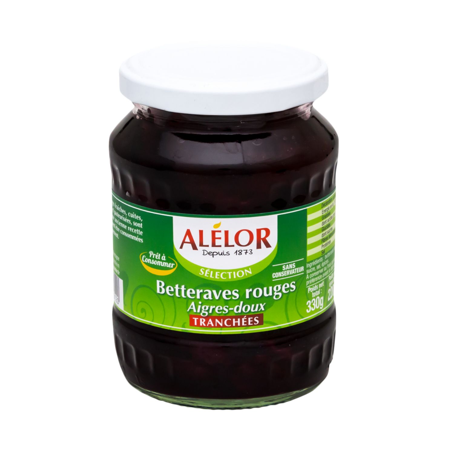 Betteraves rouges, vinaigre d'alcool, sucre, sel, épices.