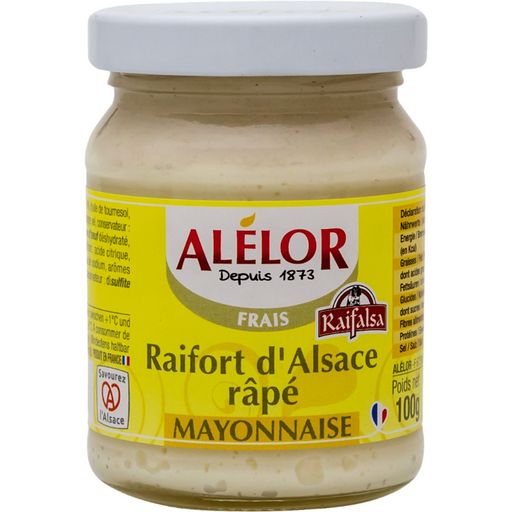 Raifort d'Alsace Mayonnaise 100G Ce condiment équilibre harmonieusement la force du raifort avec la douceur de la mayonnaise… C’est une préparation adoucie par ce mélange qui donne une douceur au palais et offre ainsi un accompagnement idéal avec les viandes froides ou chaudes, le pot au feu, ou bien sûr la choucroute !