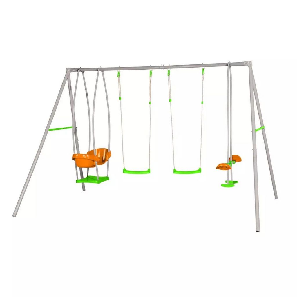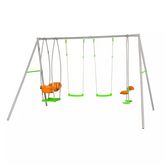 Le portique en métal SULVA est un portique en acier, solide et résistant. Il offre un grand espace de jeux et 4 agrès pour amuser et divertir vos enfants de longues heures. Ce jeu de plein air est équipé de 2 balançoires et 1 face à face et également 1 nacelle. Les balançoires sont par ailleurs réglables à l'aide d'un tendeur. Ce portique s'adresse à une large tranche d'âge de 3 à 12 ans, il plaira autant aux grands qu'aux petits.