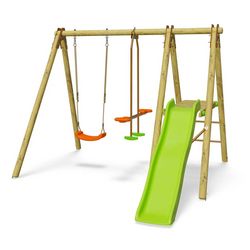 1 balançoire, 1 face à face, 1 plateforme 90cm, 1 toboggan de 1,73m de glisse
