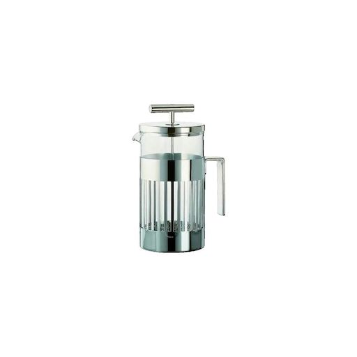 La cafetière à piston Alessi 9094/3, conçue par Aldo Rossi, est un accessoire élégant pour préparer café et thé. Fabriquée en acier inoxydable 18/10 poli et verre résistant à la chaleur, elle offre une capacité de 240 ml, idéale pour 1 à 2 personnes. Son mécanisme de piston optimise l'extraction des arômes, tandis que son couvercle ergonomique facilite le nettoyage. Compacte avec une hauteur de 17 cm et un diamètre de 7,2 cm, cette cafetière allie design raffiné et fonctionnalité pour les amateurs de café et de thé. Poids : 0.68 kg.