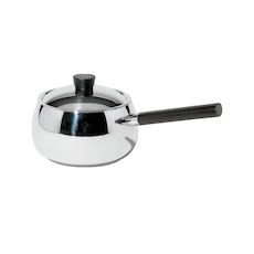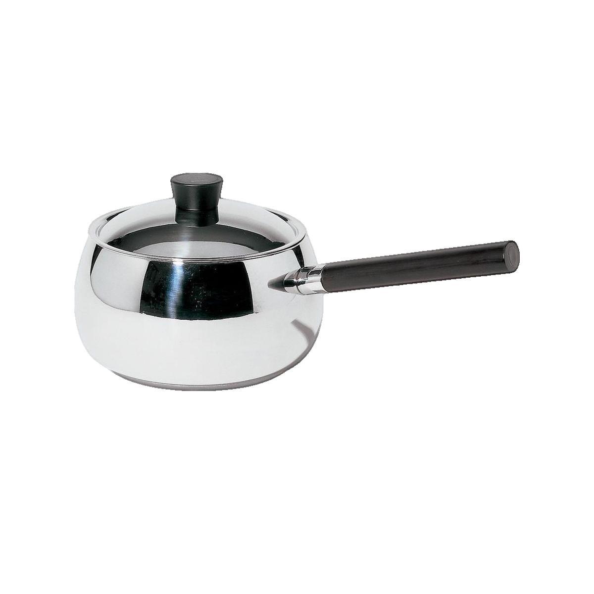 Casserole à fondue alessi en acier inoxydable 18/10 avec manche en bois noir