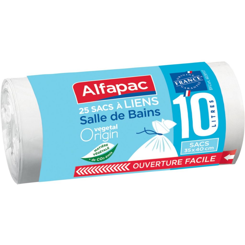 Sacs-poubelle fabriqués à partir de 90% de matières végétales renouvelables : canne à sucre. Empreinte carbone réduite de plus de 90% par rapport aux sacs fabriqués à partir de matières pétrolières. 100% recyclables. Fabriqués en France et certifiés Origine France Garantie. Dimensions des sacs: 35 x 40 cm 25 sacs-poubelle 10L à liens - Salle de bains