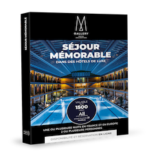 Un séjour dans un hôtel de luxe – Offrez (ou offrez-vous) un séjour mémorable dans plus de 21 hôtels MGallery et plus de 1500 établissements du groupe Accor partout en Europe. Partez à deux ou à plusieurs pour un séjour sur-mesure, avec tout le confort d'un hôtel élégant et de luxe. Ce cadeau est idéal pour toutes les occasions : anniversaire, Saint-Valentin, Noël, ou simplement pour faire plaisir, étant parfait pour une escapade mémorable.Confort, modernité, et élégance – Valable pour une ou plusieurs nuits en France et en Europe, vous avez l'occasion de profiter des plus beaux hôtels aux meilleurs prix. A travers des décors uniques et une identité forte, chaque boutique hôtel MGallery raconte une histoire, invitant les voyageurs à vivre une parenthèse élégante et immersive. ALL Accor et MGallery mettent en avant vos goûts et vos envies, garantissant une expérience haut de gamme et inoubliable.Une expérience personnalisable et simple à offrir – Avec des milliers de dates partout en France et en Europe, vous bénéficiez d'une disponibilité et réservation en ligne toute l'année et tous les jours de la semaine, en seulement quelques clics. Ce bon de 299 euros est valable 12 mois à partir de la date d'achat.