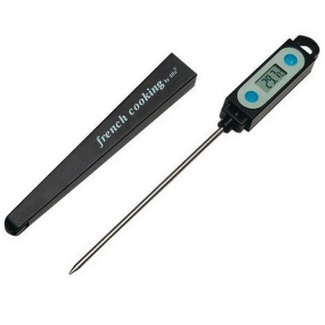 Alla France 910.0150E Thermomètre digital Alla France 910.0150E à sonde perçante avec amplitude de - 50° à + 200°C. Résiste à l'eau. La résolution de l'affichage est de 0.1°. Il a une fonction Maxima et Minima. Il a une sonde inox perçante de longueur 125mm et d'un diamètre de 3.5mm.