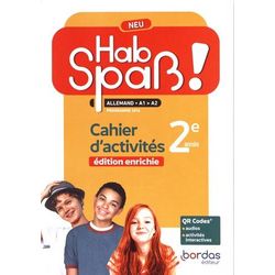 Hab Spaß! Neu 2e année : un cahier enrichi suite à vos remontées et attentes # Les points forts - Un cahier grand format pour faciliter la prise en mains de l'élève - Du délestage lexical et grammatical pour faciliter la compréhension et l'expression en allemand - Des activités supplémentaires en lexique pour manipuler de manière ludique le vocabulaire et faciliter la mémorisation - Des PRL (Pratique Raisonnée de la Langue) en grammaire pour fixer les règles sur le long terme. --- # Les plus de la collection - Des activités numériques interactives en grammaire et en lexique qui permettent de réactiver les contenus linguistiques - Ces activités favorisent le travail à distance et en autonomie de l'élève : l'élève s'entraîne efficacement et de manière ludique