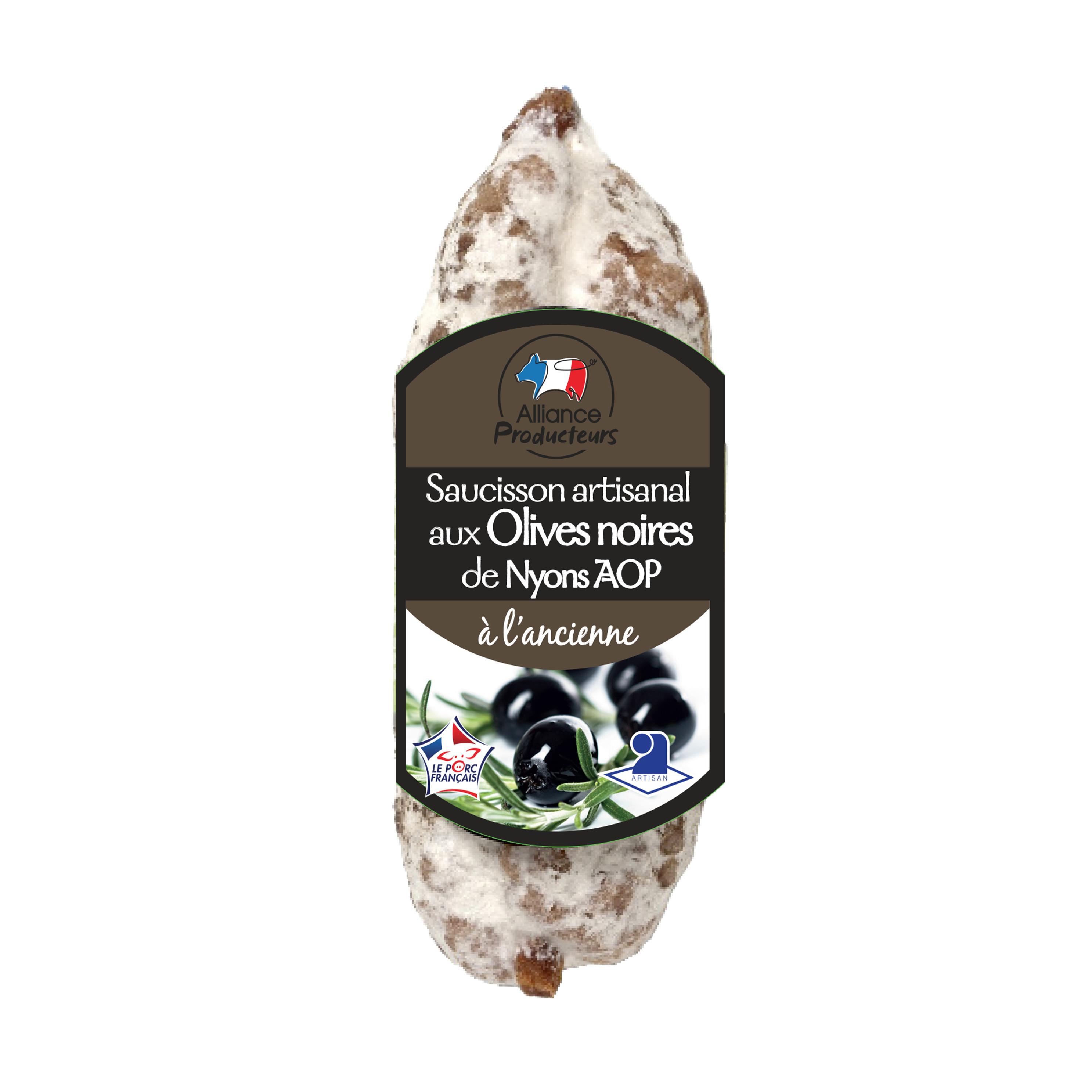 Saucisson artisanal aux Olives noires de Nyons AOP à l'ancienne