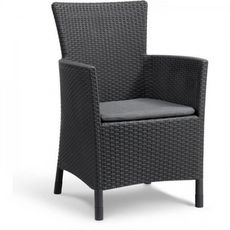 Fauteuil de jardin - Allibert by KETER - IOWA - En résine imitation rotin tressé - Coloris : gris graphite - Avec coussin