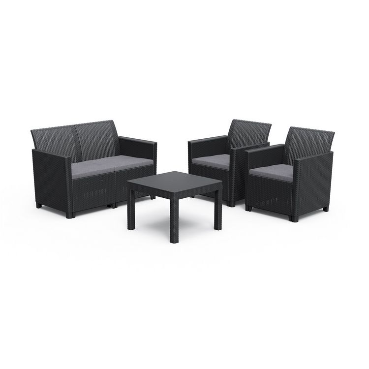 Salon bas de jardin 4 personnes gris graphite CLAIRE
