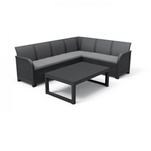 Salon de jardin avec table basse 2 en 1 - en résine - Allibert by KETER - 6 personnes - SanRemo - Gris graphite