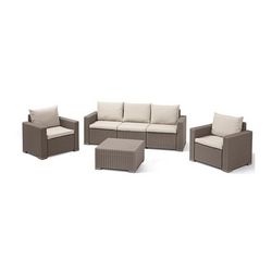 Salon de jardin en imitation resine tressee ALLIBERT avec table basse - 5 personnes - California - Beige