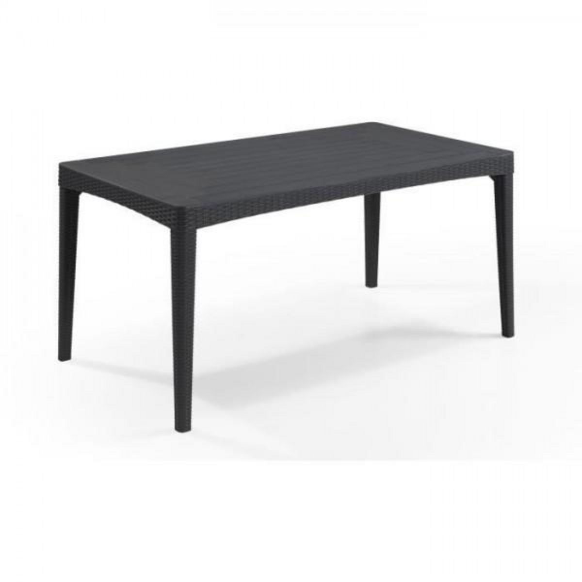 Table de jardin 4 a 6 personnes - 160 x 90 x 74 cm - Plateau lattes imitation bois, armature et piétement imitation rotin tressé - Table 6 personnes - Girona - imitation rotin tressée - gris foncé - 160 x 90 x 74 cm - Plateau lattes typé bois - armature et piétement imitation rotin tressé rond - Ell