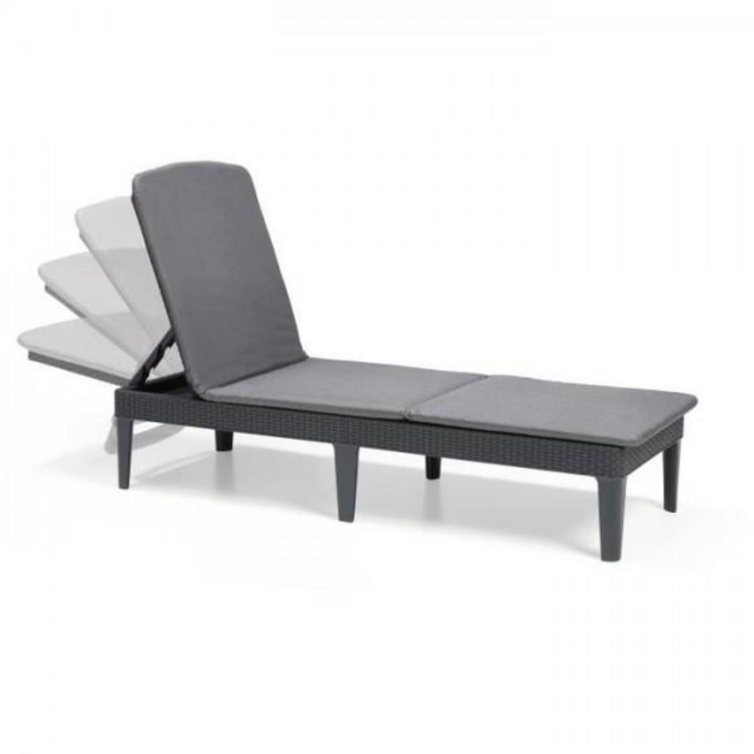 Transat Bain de soleil - Allibert by KETER – JAIPUR - en résine imitation rotin tressé - gris graphite - dossier réglable avec cous