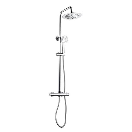 Avec la colonne de douche RONDI, ALLIBERT vous propose une colonne de douche réglable en hauteur entre 82 et 112 cm avec un robinet thermostatique. Elle comporte un pommeau de tête en ABS chromé avec 1 jet pluie anticalcaire Diamètre: 23.8 mm, une douchette à main 1 jet, une barre de douche en inox chromé brillant. Le robinet thermostatique comporte un déviateur pour jet à main - jet pluie pour plaire à toute la famille!