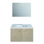 un pack complet comprenant un miroir, un plan de toilette, un meuble lave main. FICHE TECHNIQUE- Le pack comprend :- 1 Miroir collé sur panneau PPSM à fixer.- 1 Plan polybéton avec vasque.- 1 Meuble sous-vasque avec en PPSM.- Les deux portes du meuble s'ouvent sur un grand espace de rangement et se